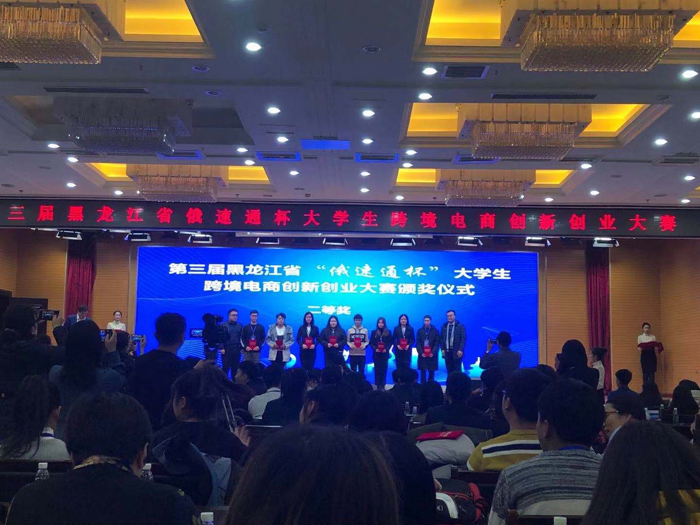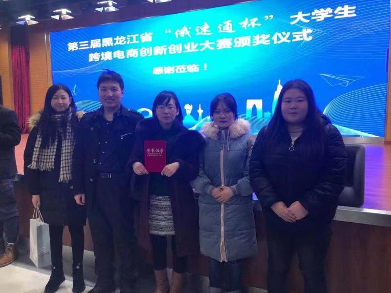 2019年12月1日在黑龙江大学举办的黑龙江省"俄速通杯"老员工跨境电商创新创业大赛中,公司电子商务专业通过选拔,派出了郭傲男、白明薇、周乙婕一只代表队参加决赛,员工经过激烈的角逐,最终获得二等奖。