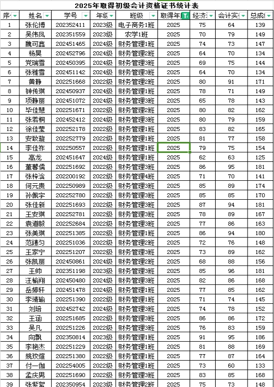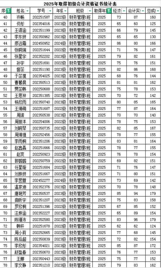 整体合格人数实现突破。公司有117名在校生取得合格证书,比2024年(下同)增加13人。其中:财务管理专业112人,增加11人;非财务管理专业5人,增加2人。