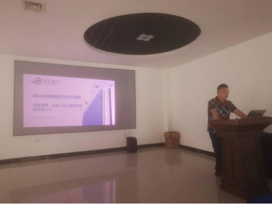 作为一家从事无人机研发、生产和无人机技术培训的企业,黑龙江科大格羿创新科技有限公司业务负责人关喆华向师生们介绍了公司的业务发展情况,利用PPT展示了无人机在财务、会计、资产评估领域的应用案例,建议同学们在学好专业知识的基础上,要适应数智时代发展需求,提前掌握数智技术应用技能,努力成为一名“数智+专业”应用型人才。