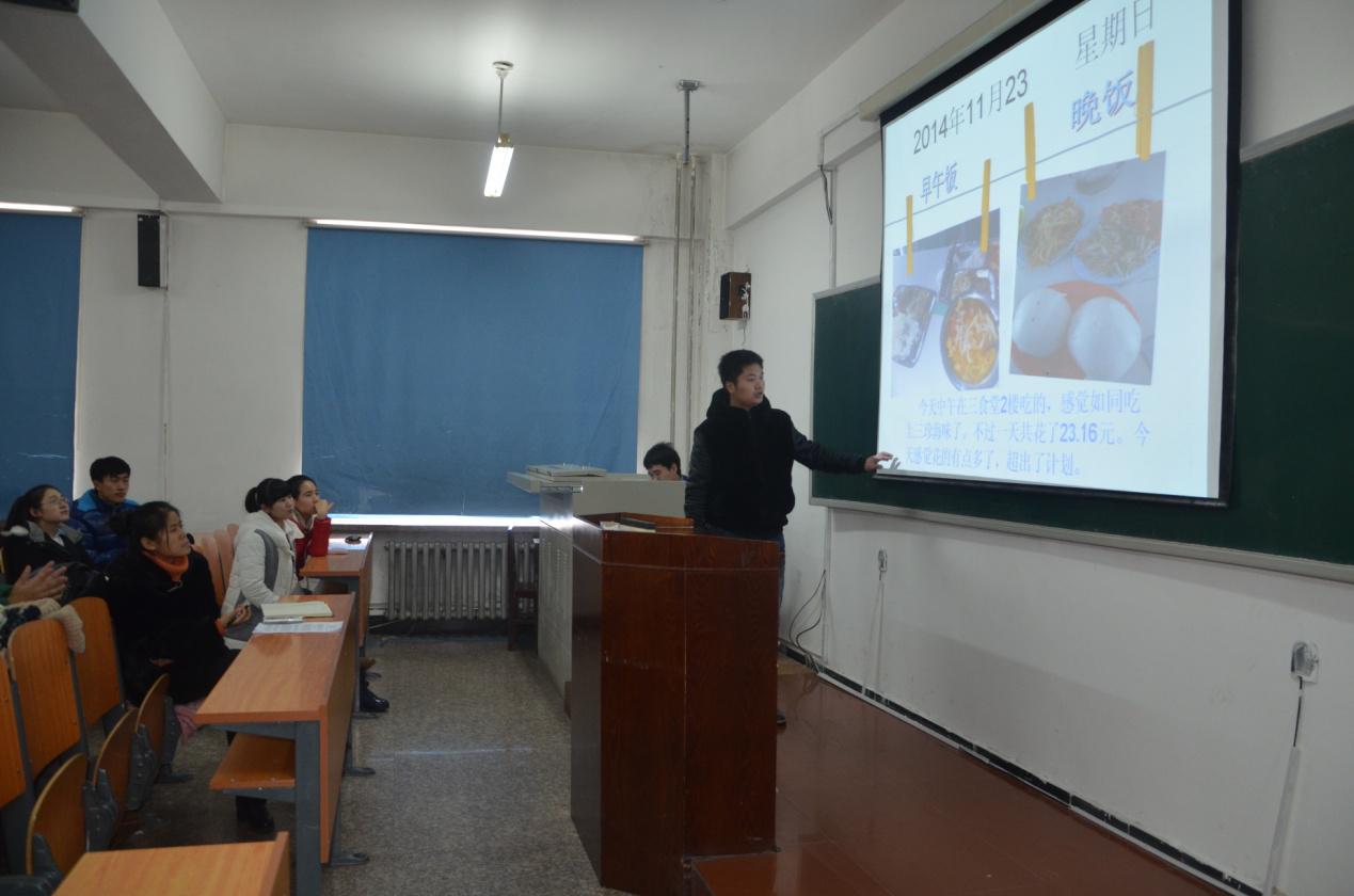 各个小组以PPT的形式将一周的活动过程进行了汇报,用图片及文字解说详细记录了每日三餐及生活费明细。参赛选手大都把馒头、粥、特价菜作为主食,合理搭配,营养均衡,在保证自己能吃得饱、吃得健康的基础上把生活费降到最低。李玉军、于志豪等四名选手组成的A B小组在活动之余对BETVICTOR员工生活费进行了问卷调查,针对部分员工的高消费情况提出了合理意见,他们表示,节约是一种风尚,任意挥霍父母的钱财是可耻的,每个人都应该把勤俭节约作为一种习惯,并一直坚守下去。高爽代表的“爽爽爽”团队一日两餐,用米粥和水果替代晚餐,最终共花费生活费66.27元,赢得了老师和同学的阵阵掌声。BETVICTOR伟德员工党支部书记姚娇娜在听完同学们的汇报后,对大家一周的表现进行了表扬与肯定,她强调最低生活消费挑战周活动所要进行的是一种生活体验,所要明确的是一份社会责任,大家要挑战的不仅是自己每天的最低生活消费底线,更是那些校园中随处可见的、不文明、不健康的社会现象。