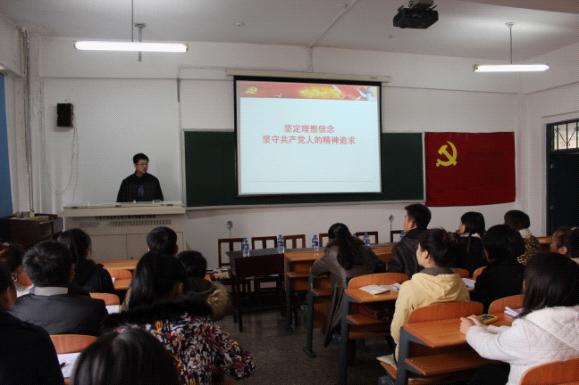党总支书记何平首先对在座的党员进行了肯定并从多角度分析了同学们的入党动机,他表示,入党意味着放弃一部分普通公民的权利和自由,要多尽一份力,在政治上讲忠诚,组织上讲服从,行动上讲纪律,以严的标准要求自己,以严的措施完善自己。何书记结合第十八届四中全会,教育同学们要树立正确的入党动机,有正确的政治需求和观念,并要求同学们认真学习党的理论知识,积极参加社会实践活动,真正的深入党,了解党,做身边人的榜样。