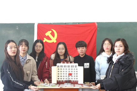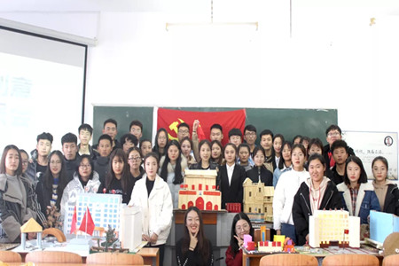 财务管理专业三班《天安门》作品设计别出心裁,在作品讲解过程中,用团队制作的简易升旗模型,现场举行“升国旗”仪式。威严肃穆的天安门模型深入人心,体现了党校学员对党崇高的敬意,对国家富强繁荣的美好憧憬。