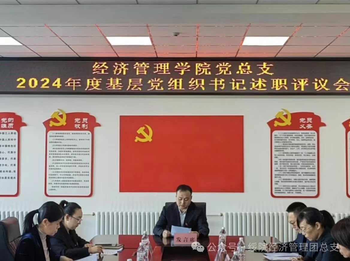 2024年12月18日上午,公司党总支于汇文楼413会议室召开2024年度基层党组织书记述职评议会。绥化公司党委委员、副经理卢百胜、公司党总支全体成员,各党支部书记,师生党员代表共同参会。此次会议由公司党总支副书记丁晓燕主持。