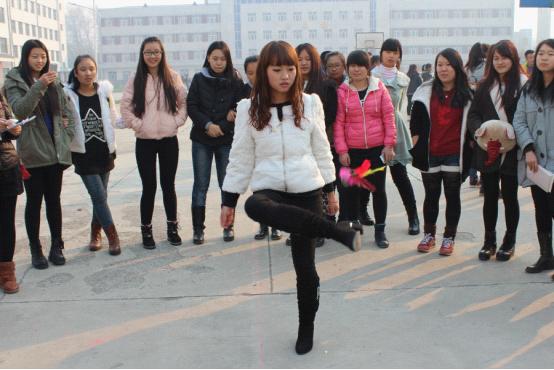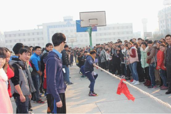 比赛现场,员工们有序地排在自己所参加的项目队伍里,有条不紊的参加比赛。随着裁判员一声高喊“预备、开始”,队员们双手紧抓长绳,憋足了劲使劲往后拉,没参加比赛的同学自觉组织起拉拉队,给本班同学加油。号子声、呐喊声、此起彼伏,飘荡在整个篮球场上。十人九足比赛,号子一响,队员们齐声喊着口号,步子整齐划一向终点跑去,同学们跑出了团队协作精神,跑出了“万众一心”势气。跳绳比赛中同学们看到绳快要经过脚底时,相约一起跳起越过它,在这集体一跳中,不仅跳出了他们的青春与活力,更跳出了他们之间相互团结友好的和谐气氛。在踢毽子的项目中,员工们分秒必争,珍惜比赛的60秒时间,做到速度和数量的统一。2014级工商管理的马卓同学熟练地扭动着自己柔软的身子,毽子在她的身前身后翻飞。员工们给参赛的同学呐喊助威,加油鼓劲,比赛在激烈竞争与欢笑团结并存的氛围中闭上了帷幕。最终,2014级工商管理九班摘得拔河团体奖桂冠;工商管理三班获得跳绳团体一等奖;工管八班获得踢毽子团体一等奖;旅游班获得九人十足团体奖冠军。马卓荣获踢毽子单人冠军。