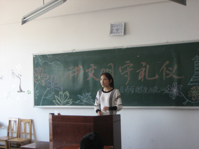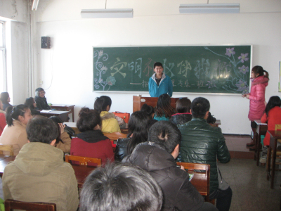 各个班级的团日活动,以朗诵行为规范的方式让同学们加深对文明礼仪准则的理解和践行,同时团支书为大家做“知荣辱 讲礼仪 塑形象”的主题演讲,呼吁同学们日常生活注重文明礼仪细节,在团日活动中,同学们将文明礼仪知识寓于知识竞赛中,以激励同学们学习文明礼仪的热情。辅导员管老师也积极投身于文明礼仪建设之中,深入每个班级为同学们讲解日常生活、学习中应注意的文明礼仪,告诉同学们注重文明行为的养成,自觉行动,从自身做起,从小事和细节做起,真抓实干,以培养同学们自身积极健康的人格。