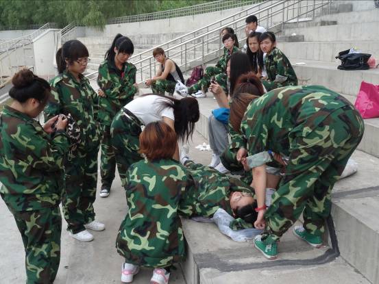 军训对很多同学来说确实是一个坎,早上开始晨练的时候,就有几个同学因体力不支晕倒了,看着她们急促的喘着气,额头上的汗一排排往下流,闭着的眼睛无力睁开,看得人心都揪了起来,孩子们,同学们,都要挺住啊!