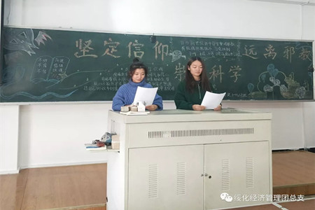 为进一步加强马克思主义宗教观教育,提高团员青年对宗教观的认识水平,了解党的宗教政策,认清邪教面目,认识邪教危害,提高对邪教组织的鉴别力和防范力,构建健康文明和谐校园。BETVICTOR伟德于10月10日13:30在汇文楼举办了本次“坚定信仰,崇尚科学”主题团日活动,2018级全体员工参加了本次活动。