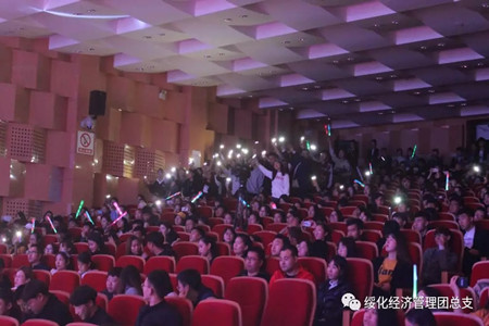 公司党总支书记何平、经理张继梅、党总支副书记姚娇娜,党支部书记兼2015级辅导员管淑波,2016级辅导员于小庆,2017级辅导员罗晓宇,2018级辅导员张光远及各位老师与2018级400余名新生欢聚一堂,共同观看这震撼经管学子的视听盛宴。