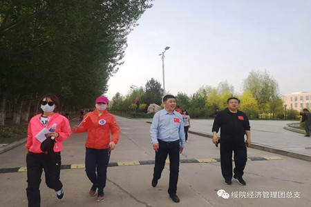 风和日丽,微风正好,为迎接新中国成立70周年到来之际,5月15日,公司举办教职工健步走活动,公司党总支书记何平,经理张继梅,团总支书记、2018级辅导员张光远,2016级辅导员于小庆和部分任课教师参加了此次比赛。此外,2017级辅导员罗晓宇作为竞赛裁判指导了此次比赛。