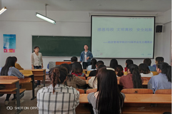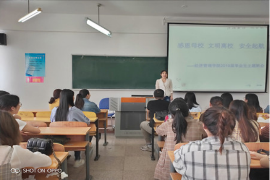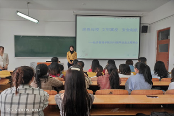 本次班会由公司2019届毕业班辅导员管淑波老师主持。班会中,管老师首先分别从毕业生“日常教育”、“就业创业”、“文明安全”、“心理健康”、“诚信感恩”、“员工情怀”六大方面进行了详细讲解,让同学们争做文明毕业生,在感恩母校、惜别母校的同时,为母校的安全稳定出最后一份力、尽最后一份心。毕业班同学代表刘爽饱含深情的说到“母校见证了自己四年的成长,自己的足迹四年来留在了母校的每一个角落,现即将离开母校,以后自己无论身在何方,都会心系母校,祝福母校,祝福母校百年名校梦早日实现”。