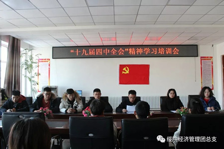 为深入贯彻学习党的十九届四中全会精神,11月25日公司于汇文楼415会议室组织开展了学习党的十九届四中全会精神培训会。培训会由团总支书记于小庆主持,团总支员工会各部门代表参加了培训会。