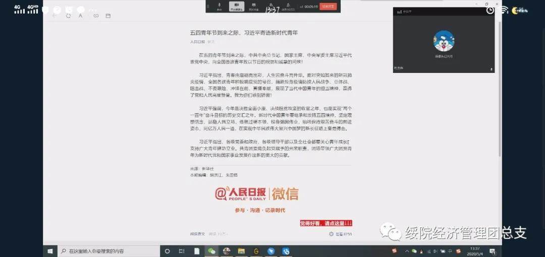 会上同学们纷纷以文字形式展开讨论,表达学习寄语精神后的观点、看法和感受。我们重返五四的历史现场,对五四这代人进行精神打捞,摸索、反思、传承。我们继承的最重要的五四精神宝藏之一,就是青年精神。这一百年来,源头是他们,书写今天的是我们。梦想与坚持,让我们抵达更远的地方。责任与担当,激励我们去追寻自己想要的人生。一个个有志青年,加起来便是时代。青春是善良、勇敢、无私和无所畏惧,是心里有火,眼里有光。这是我们的青春,逆流而上;这是我们的未来,不甘平凡。