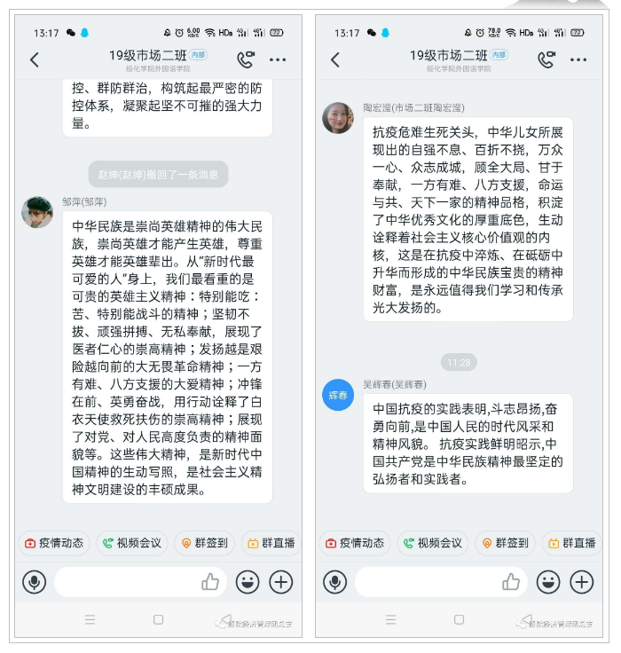 为了深刻学习抗疫英雄的事迹,激发公司老员工的爱国情怀,激励老员工建功新时代,肩起时代重任。公司按照公司要求,组织公司员工于5月18日上午10时线上观看“时代新人说-对话战役英雄”思政课直播,通过电视、电脑、手机等方式观看直播,2019级辅导员张晗老师以及员工代表观看了本次思政课直播。