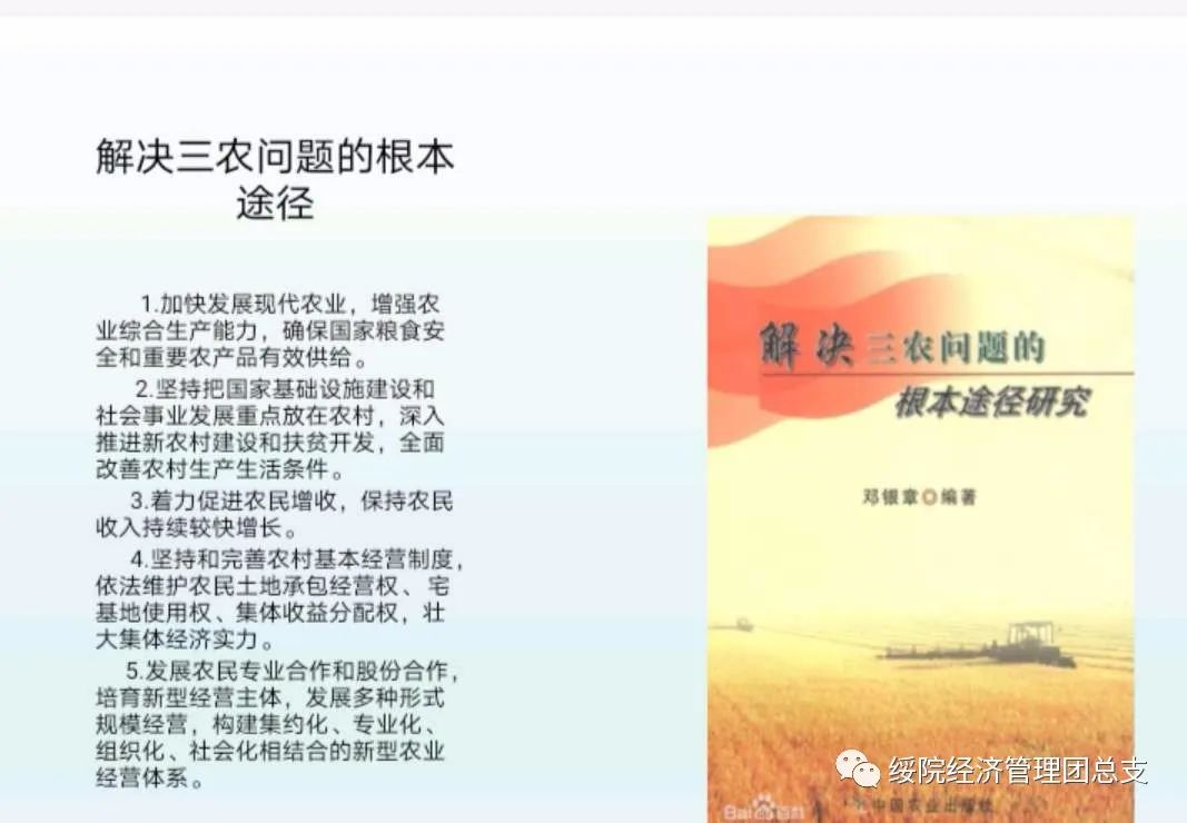 公司财务二班吴孙龙、徐子恒等同学组成的社会实践小组深入农村,进行“三农”知识政策讲解和农业农村的基础情况调查。吴孙龙同学深入农村,向村民们讲解了什么是“三农”、“三农”问题、粮食问题等知识。在知识宣讲的结束后,村民们提出了“三农”问题指的是什么、粮食问题指的是什么等疑问。公司徐子恒同学对这些问题进行解答,并向村民们询问近几年来国家相关政策和基本战略的实施情况。谭玉兰介绍,2004年国家在全国范围内实行的粮食直补政策,为他们的生活提供了政策保障。最后,公司员工介绍了国家近几年实施的战略,包括自然生态和谐战略、区域协调发展战略、创新激励驱动战略,切实提高了农业综合生产能力,进一步深化了农村地区改革,促进了农村经济社会全面发展。