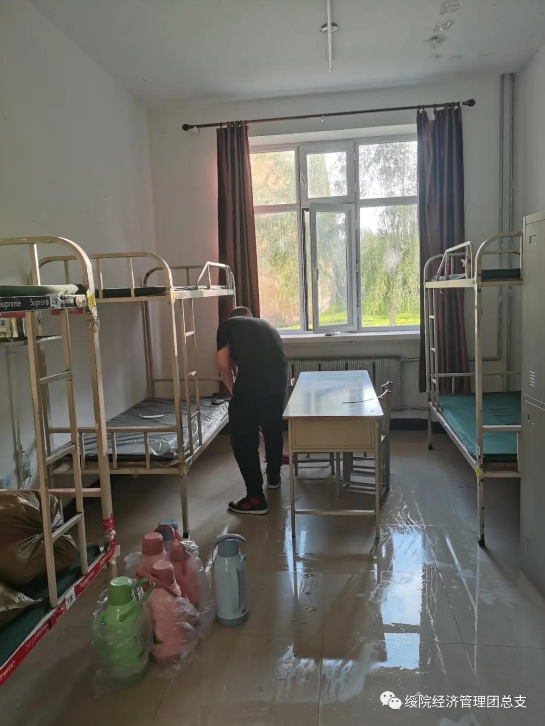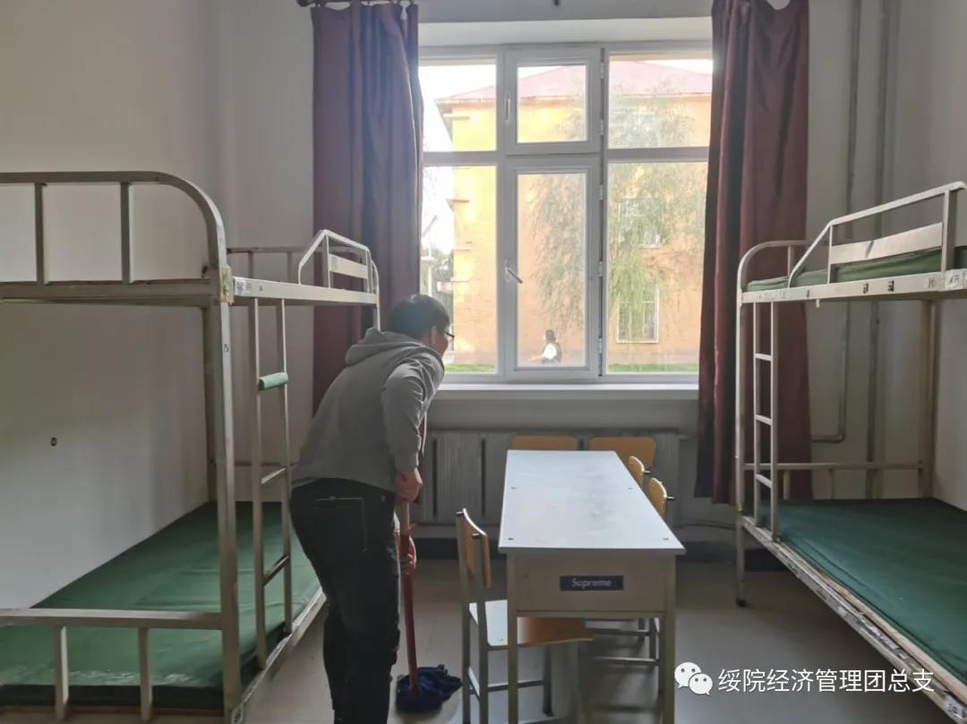 随后,志愿者们将地面打扫干净,除去各个床铺累积的灰尘,对桌面、柜子进行擦拭。志愿者们彼此分工合作、密切配合,用实际行动欢迎新生的到来,充分发扬“不怕脏,不怕累”的志愿服务精神,团结合作,践行新时代青年的责任与担当。