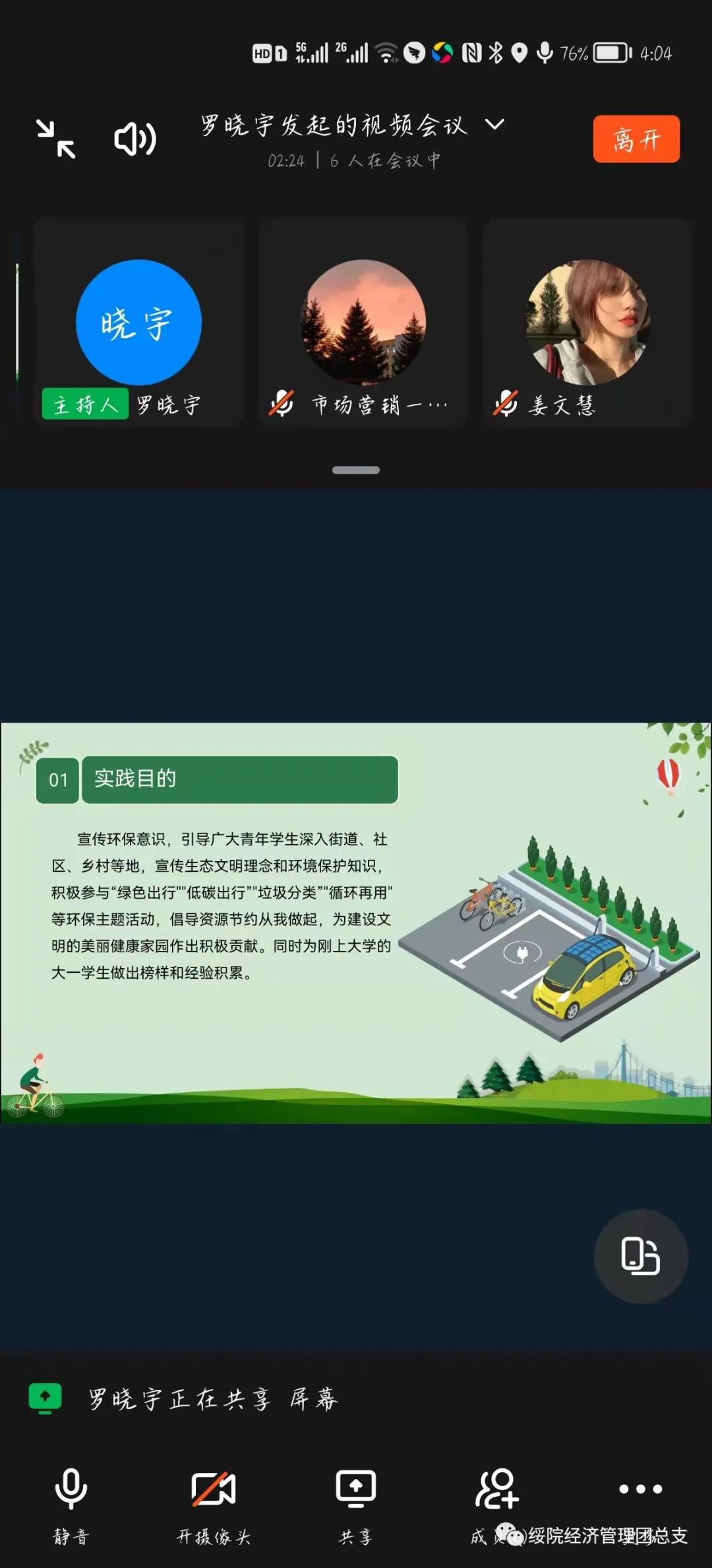 实践活动开始前,2021级辅导员罗晓宇老师通过钉钉平台线上开展社会实践动员会,进行实践内容安排和注意事项提示。本次社会实践活动分为“绿色出行”“低碳出行”“垃圾分类”“循环再用”四个实践过程。在实践中,同学们分工明确,有人在街道分发环保宣传单,向行人讲解低碳出行的环保概念;有人在社区门前,向来往行驶的车辆司机宣传绿色出行理念;还有人通过收集废弃物品制造来达成循环利用的目的。