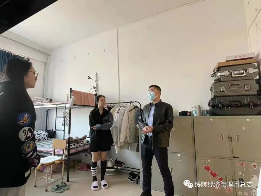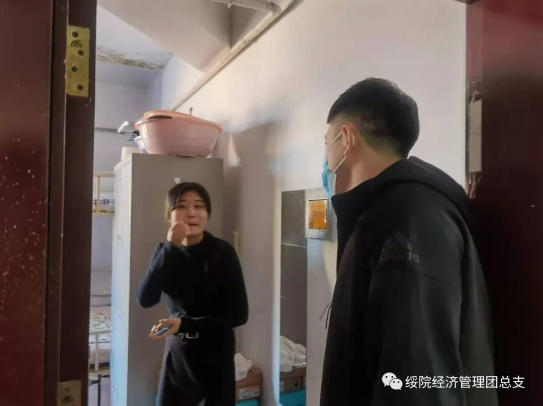 团总支副书记、2021级辅导员罗晓宇在走访中特别加强了疫情防控教育,他指出同学们要在疫情期严格遵守公司的各项规章制度,积极配合公司的各项工作,认真做好疫情防控常态化下的个人管理,平稳顺利地度过封校管理时期。