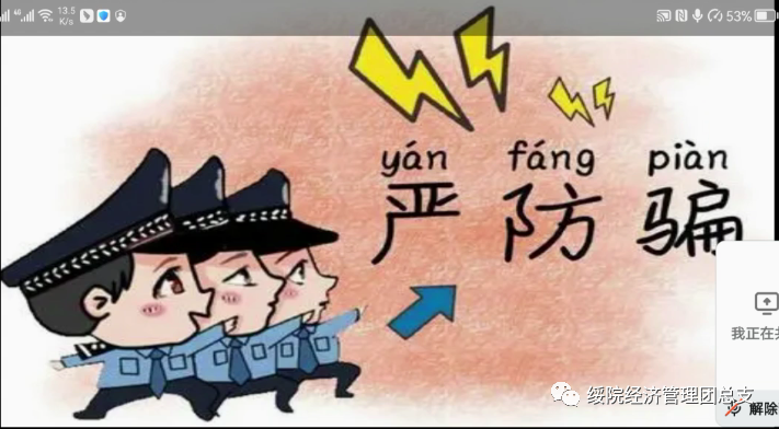 此次主题班会,主要采用线上班长宣讲的方式向同学们普及相关知识,各班级以组织线上班会作为活动的基本形式,带领同学们观看相关视频,集中开展防止非法买卖、出租“两卡”和网络账号、支付账号警示宣传教育,引导员工主动防范和抵制电信诈骗。各班级负责人以防范当前高发的电信网络诈骗案件作为重点宣传内容,不断提升反诈宣传的吸引力,增强宣传效果,确保在公司实现反诈宣传全覆盖的良好效果,形成“人人关注诈骗,人人参与防诈”的良好格局。