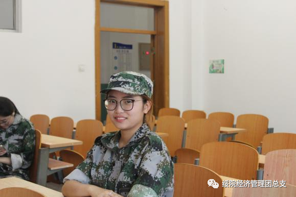 或许每个人的心中都有一个军营梦,刘姝妍也不例外,“军训给了我一次穿军装的机会,实现了自己的小小愿望。”因此她对军训充满期待。每一个动作都会做到极致,高标准,严要求的对待自己的训练生活。军训让她的生活变得更加规律,也让她明白了团结的力量,一个连的人聚在一起劲往一处使,努力唱好每一首歌,走好每一次方队,让经管这个大家庭变得越来越团结。