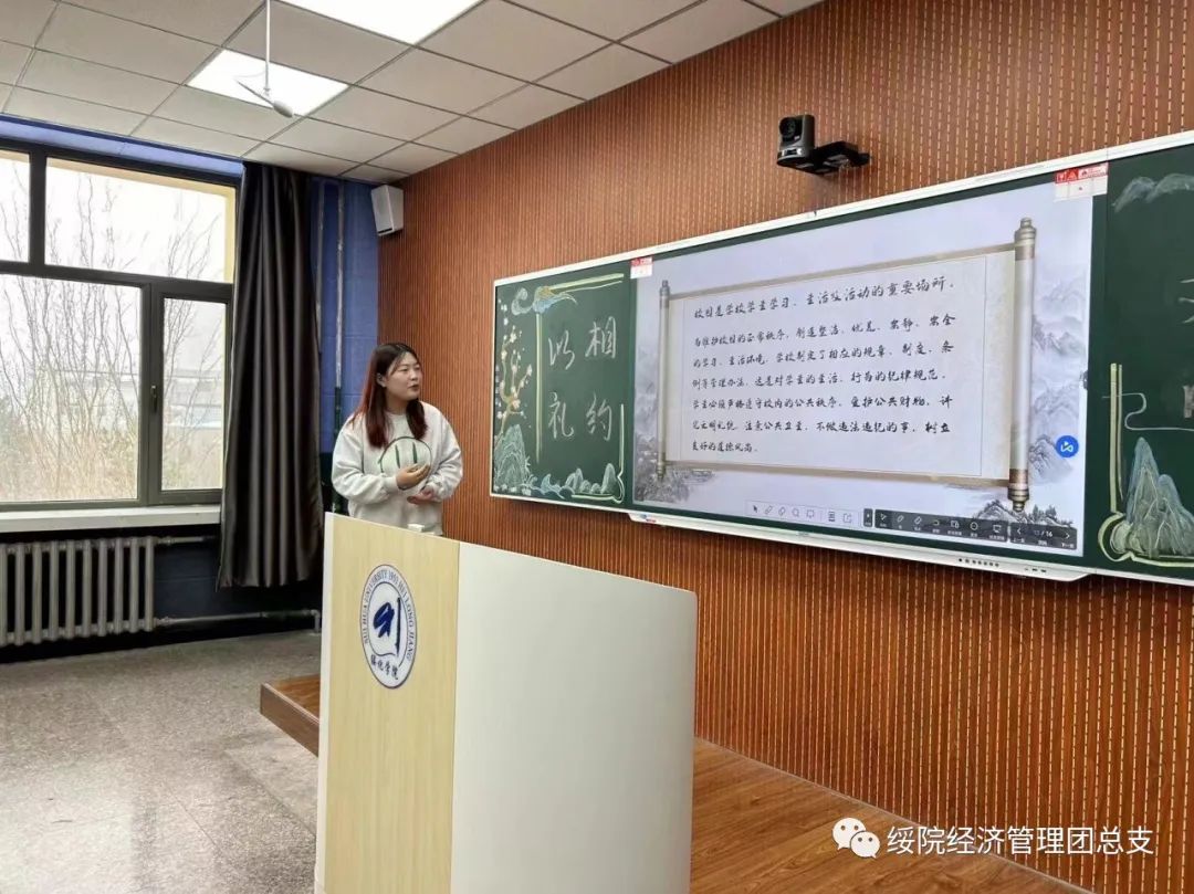 会议开始,各班级团支部用生动的语言,讲述了文明礼仪的基本内容和中华文明礼仪故事,在此过程中,同学们认真聆听,积极思考,开展心得体会,营造出和谐、向上的集体氛围,同学们对文明礼仪的理解也更加深刻。随后,各班级团支部组织同学们开展了朗诵、演讲、知识问答等活动,传播文明礼仪,树立校园新风,使同学们成为文明有礼行动的先锋队。最后,各班级团支部组织了同学们书写中华文明礼仪名言金句,不仅弘扬了优秀的传统文化,而且使同学们从中汲取了有益的精神养分。