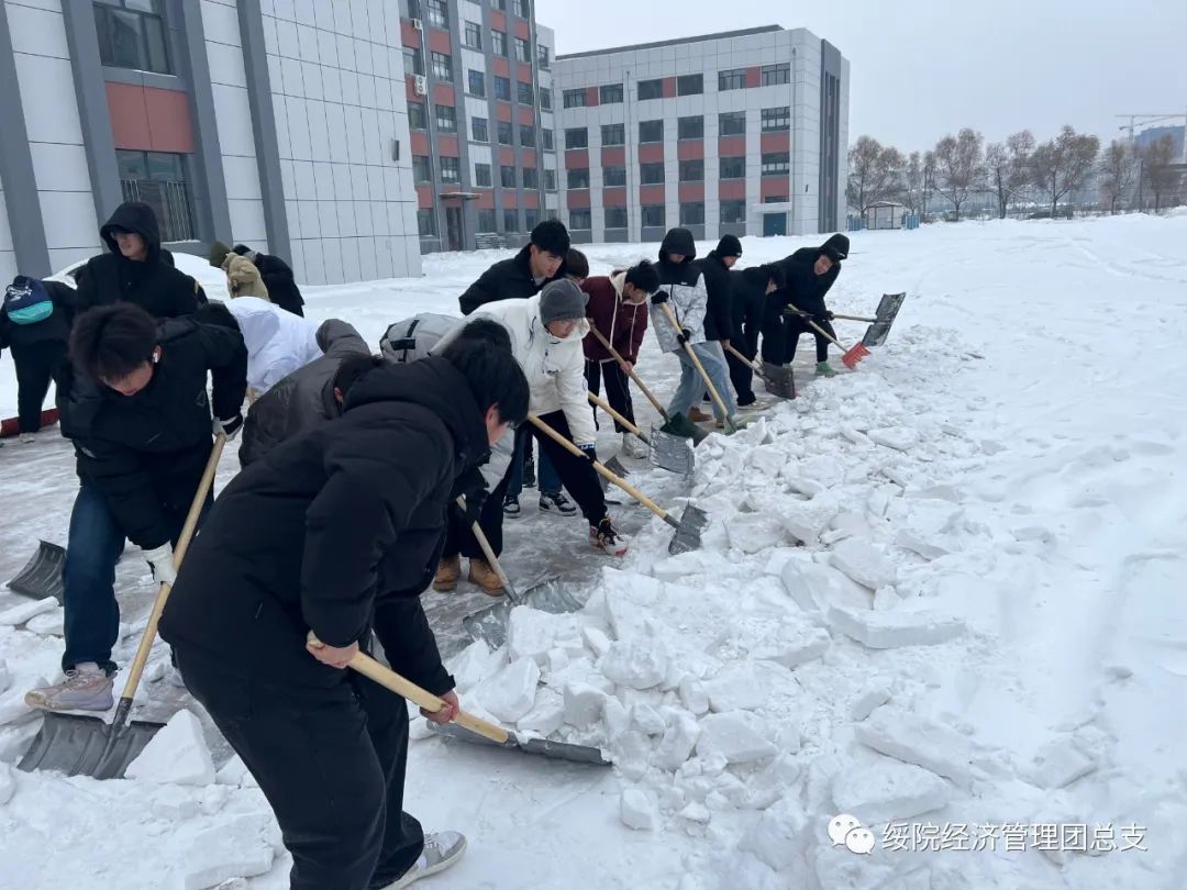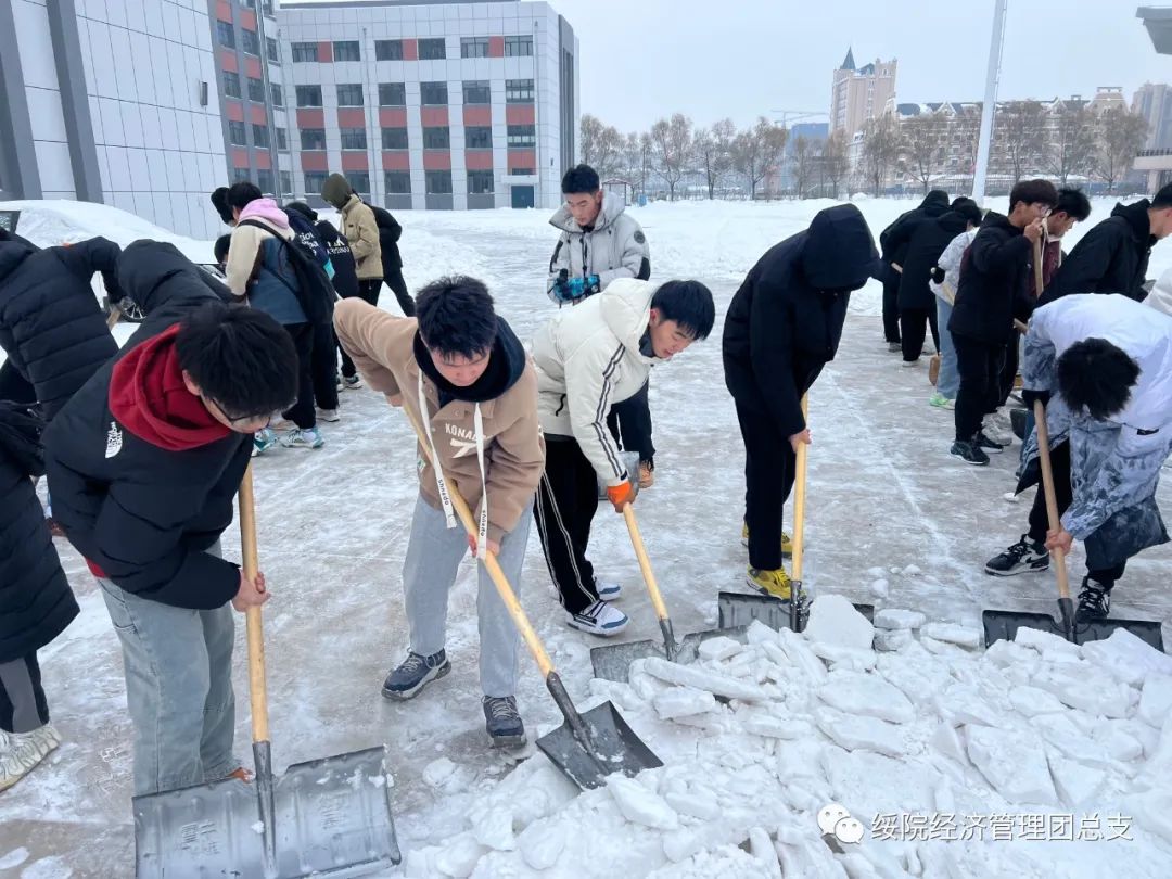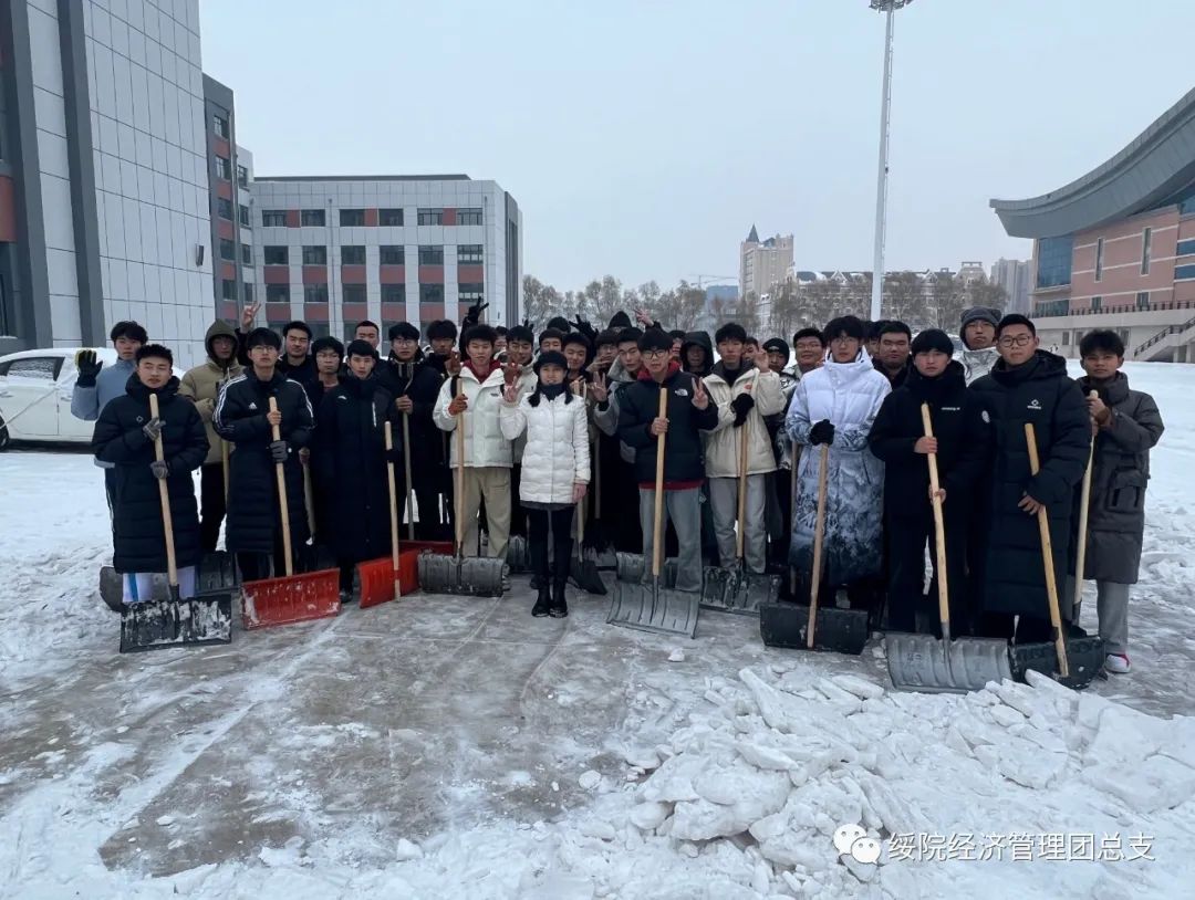 此次扫雪除冰活动强化了经管学子的劳动意识,为师生们的安全出行贡献了力量,培养了同学们的团队合作精神和社会责任感,希望在未来的日子里,经管学子能够更多的参与到类似活动中来,为社会发展贡献青春力量。