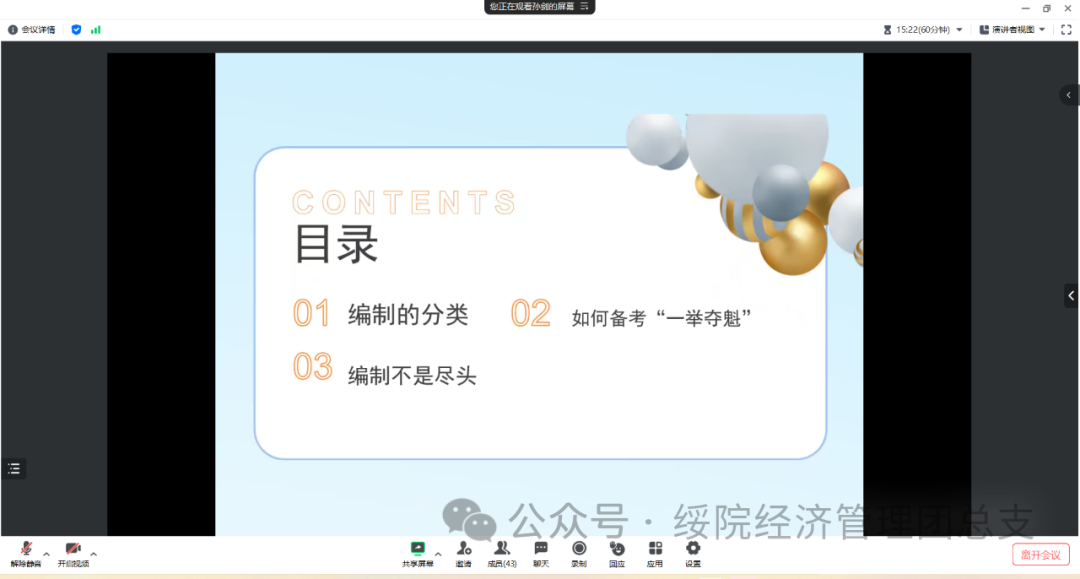 此次线上讲座为经管学子提供了一次难得的学习机会,让同学们更加细致的了解考编的方法技巧,充分发挥了优秀员工的引领和示范作用,公司将继续汇聚更多优秀员工资源,发挥朋辈教育的引领力量,助力更多员工的成长成才。