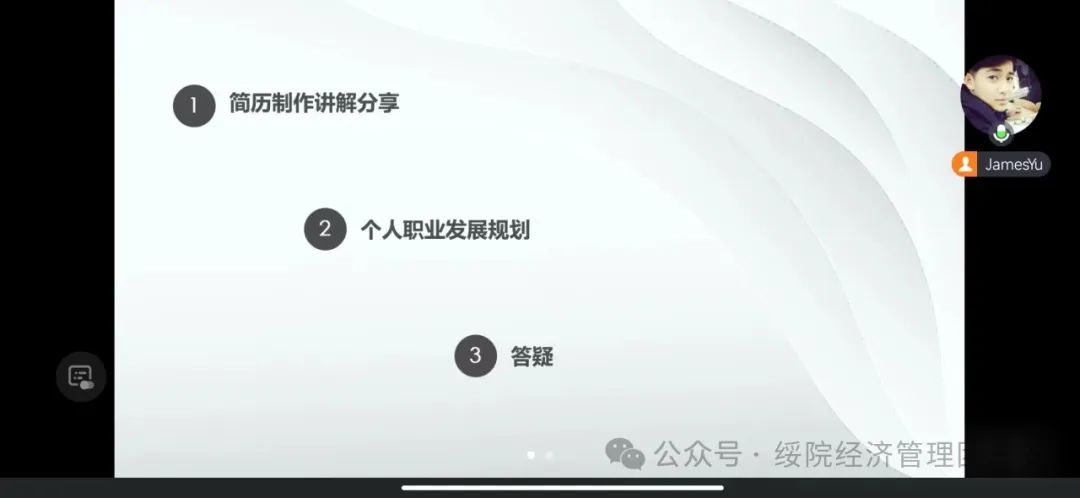 讲坛上,于承旭讲述了自己从一名普通老员工到行业翘楚的奋斗历程,通过生动真实的案例,让同学们感受到了职场拼搏的艰辛与收获。本次讲坛分为简历制作讲解分享、个人职业发展规划、答疑三个部分。他详细介绍了职场中的挑战与机遇,分析了行业发展趋势,并传授了实用的技能提升方法。在个人职业发展规划部分他从工业、学术(高校)、创业、体制四个方面引导同学们用更正确的方式来制定自己的人生规划。最后的答疑环节里同学们都十分热情地向于承旭提出了自己的疑惑,于承旭也都一一为大家解答,给出了建议。本次活动为大家提供了一个难得的交流平台,让同学们能够在交流中获得成长和启发。
