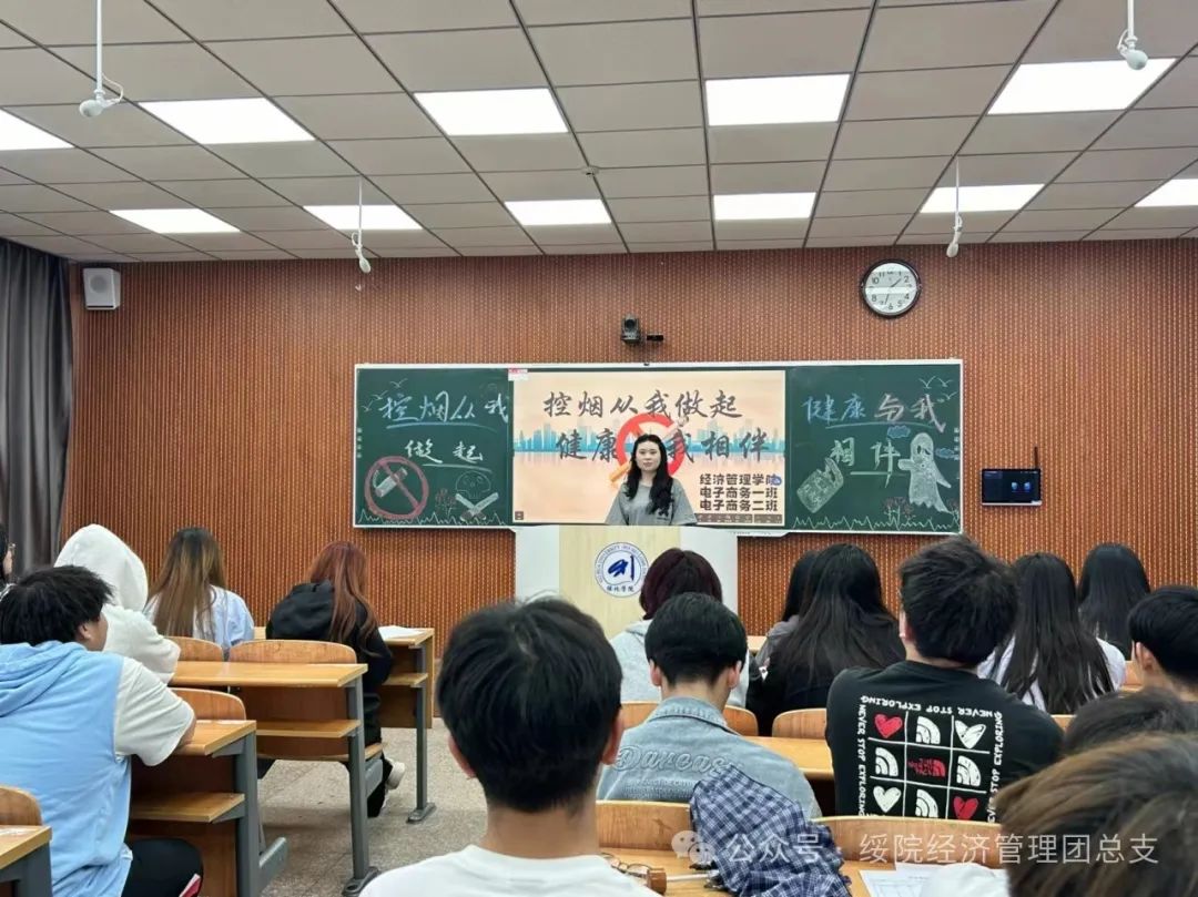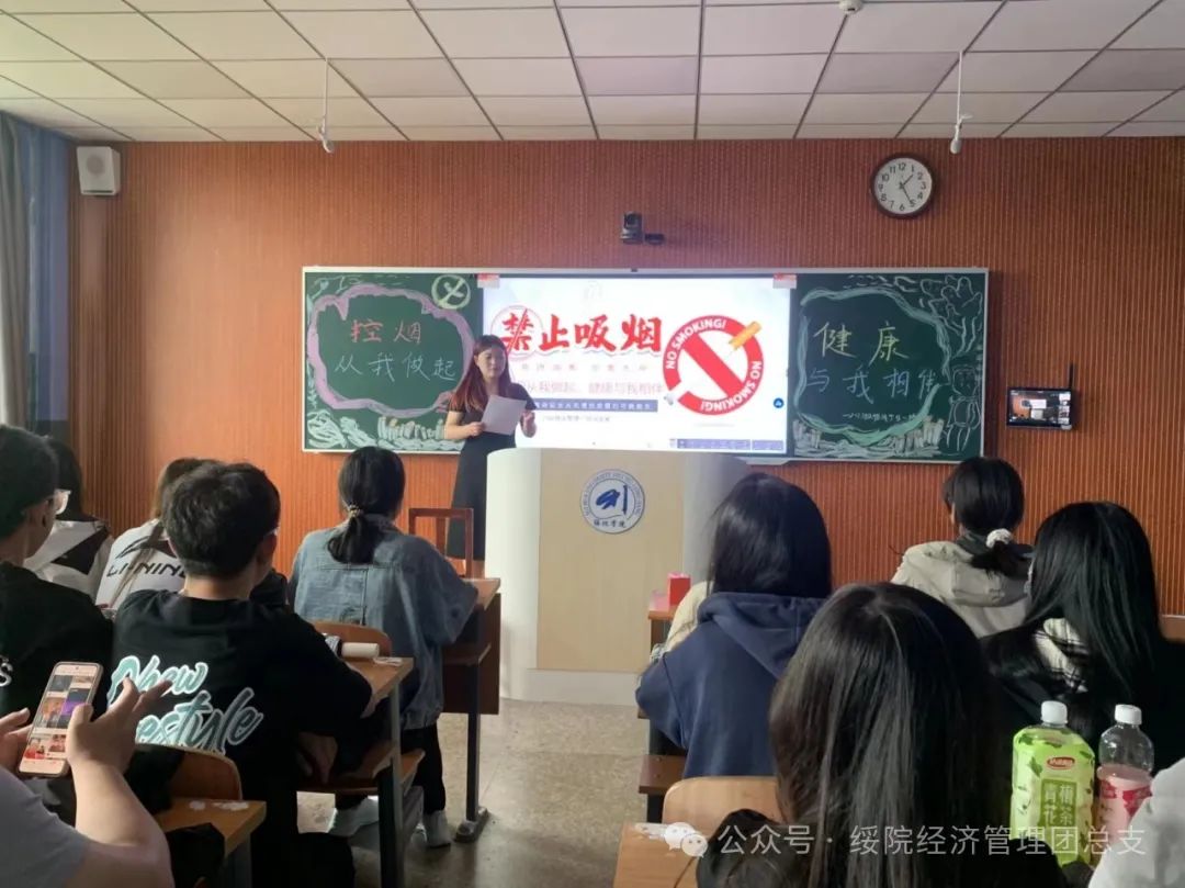 活动伊始,各班团支书通过PPT,宣传手册等形式向同学们详细的讲解了吸烟及二手烟的危害,通过分享真实故事和案例为同学们敲响警钟,让同学们深刻了解到烟草的危害以及对人体身体健康造成的伤害,除此之外各班还开展了关于禁烟教育的问答活动,进一步普及同学们对于烟草的知识,明白烟草危害是当今世界最严重的公共卫生安全问题之一以及控烟的必要性。