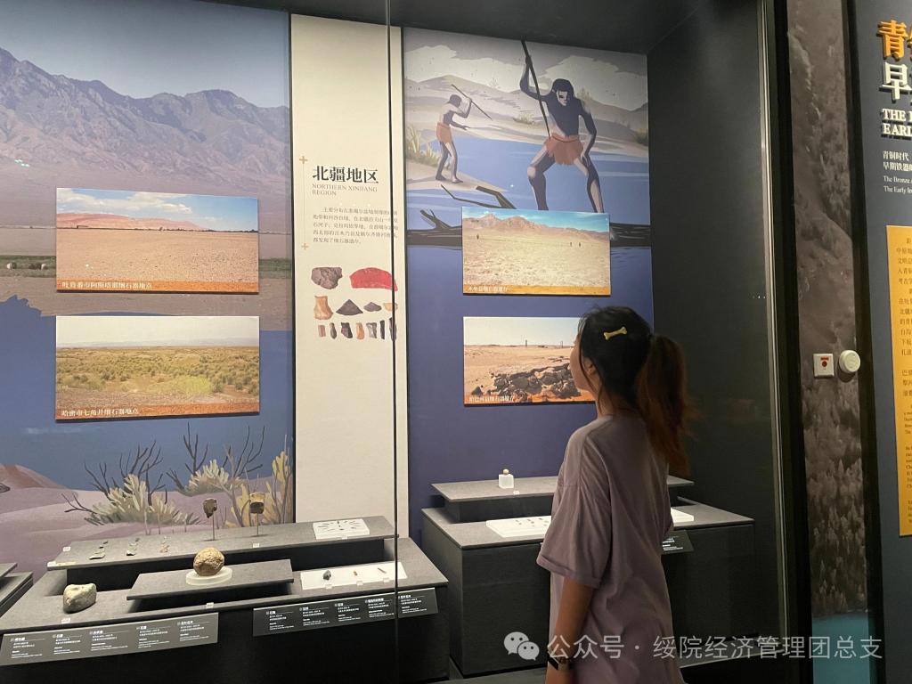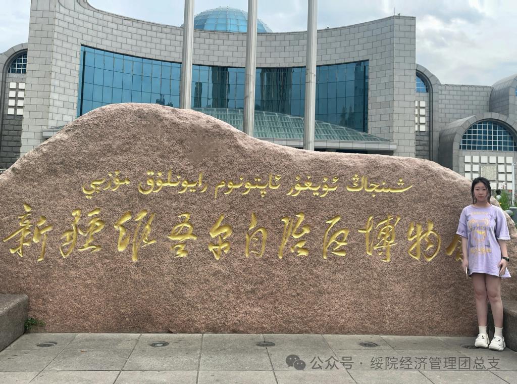 团队成员安致漩,吉宏雨来到了位于新疆维吾尔自治区乌鲁木齐市的新疆维吾尔自治区博物馆。新疆维吾尔自治区博物馆作为展示新疆地区历史、文化、民俗的重要窗口,其丰富的藏品和详尽的展览设计令人叹为观止。从远古时期的石器、陶器,到汉唐时期的丝绸、壁画,再到近现代的民族服饰、生活器具,每一件展品都承载着新疆地区悠久的历史和深厚的文化底蕴。这些展品不仅展示了新疆在不同历史时期的发展变迁,也反映了新疆与中原地区及中亚、西亚等地区的文化交流与融合。在参观过程中,团队成员被那些精美的文物深深吸引。无论是神秘的楼兰古城遗物,还是精美的龟兹石窟壁画,都让团队成员感受到了古代新疆人民的智慧和创造力。同时,团队成员也被新疆地区多民族文化的和谐共生所感动。在这里,维吾尔族、哈萨克族、回族等多个民族的文化相互交融、相互影响,共同构成了新疆丰富多彩的文化景观。