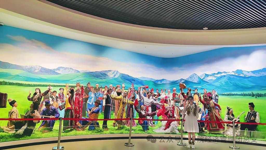 团队成员曹雨嘉来到了位于新疆维吾尔自治区伊犁哈萨克自治州伊宁市的伊犁哈萨克自治州博物馆。伊犁州博物馆作为展示伊犁地区历史、文化、民俗的重要平台,其丰富的展品和详尽的展览设计让我们印象深刻。从远古时期的石器、陶器,到反映古代丝绸之路繁荣景象的金银器、丝织品,再到近现代伊犁各族人民的生活用品和民俗文物,每一件展品都仿佛在诉说着一个个动人的故事,让我们仿佛能够触摸到历史的脉络,感受到文化的温度。在参观过程中,我们特别被那些展现伊犁作为丝绸之路重要节点的展品所吸引。它们不仅展示了古代伊犁作为东西方文化交流桥梁的重要地位,也让我们深刻体会到了丝绸之路对于促进不同文明交流互鉴、推动人类文明进步的重要作用。同时,我们也被伊犁地区各民族文化的多样性和包容性所震撼,不同民族在这里和谐共处、相互学习、共同发展,共同创造了伊犁地区丰富多彩的文化景观。