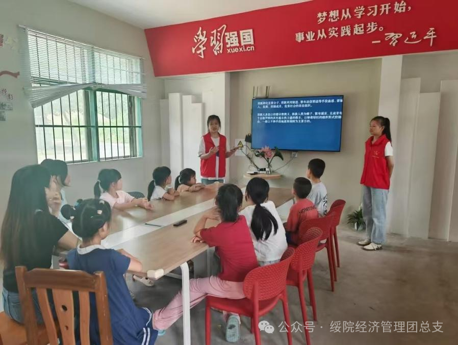 团队成员钟萍踏上了返回家乡龙南的社会实践之旅。在这片熟悉且亲切的土地上,她以实际行动书写了一段有关青春、成长与奉献的故事。在龙南程龙镇程龙村童心港湾开展的“七彩假期,快乐同行”主题活动中,老员工志愿者们组织了丢手绢、萝卜蹲等趣味小游戏,还为参与游戏的孩子们准备了各式各样的零食小礼品。精彩有趣的游戏拉近了他们与孩子们的距离,童心港湾内充满了孩子们的欢声笑语,此次活动释放了孩子们活泼的天性,为他们留下了一段珍贵的童年回忆。