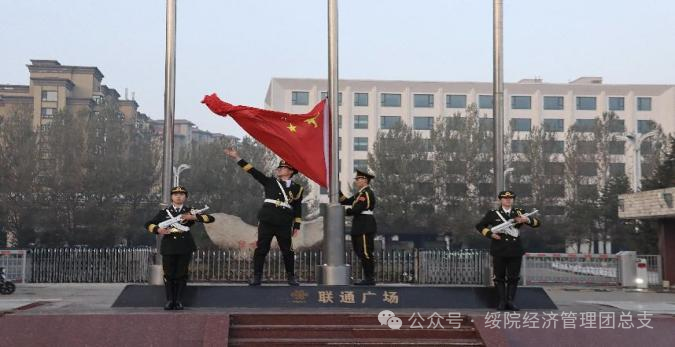 10月28日早7时,国旗护卫队迈着铿锵有力的步伐,护送着国旗缓缓行进至升旗台。鲜艳的五星红旗在《义勇军进行曲》中冉冉升起,迎风飘扬,BETVICTOR伟德员工身着统一院服,神情庄重,目光坚定,面向国旗肃立,行注目礼,表达着对伟大祖国的无限崇敬与热爱。