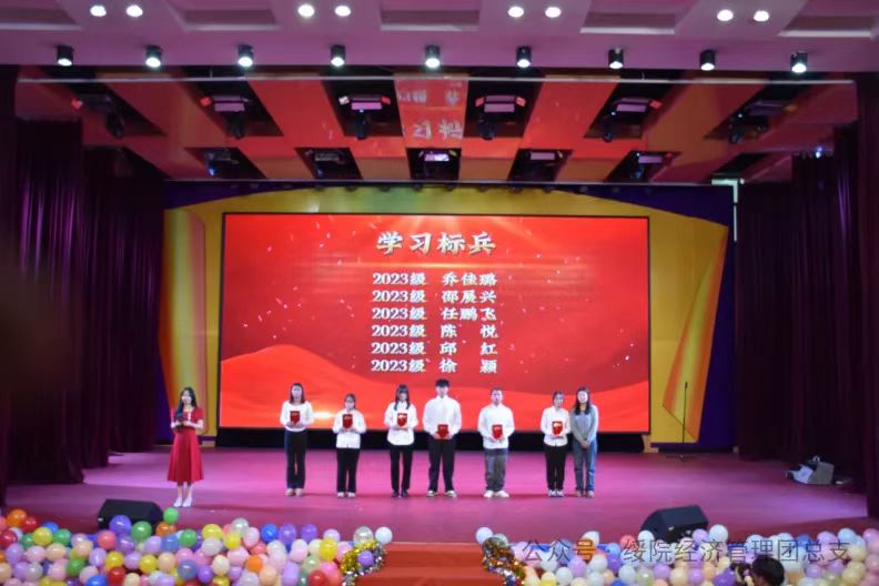 首先进行的2023-2024学年学风建设表彰大会,对学习标兵、优良学风班级、优良学风寝室三个奖项的获奖员工进行隆重表彰,公司党总支副书记丁晓燕、2024级辅导员牟东旭以及2022级辅导员于鑫淼上台为获奖员工颁奖