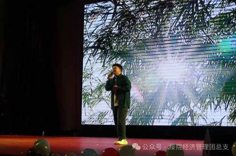 “这世界有那么多人,多幸运我有个我们。”杨鑫垚同学带来的《这世界那么多人》,直击观众的心灵,同样,多么幸运,让我们在经管相遇。