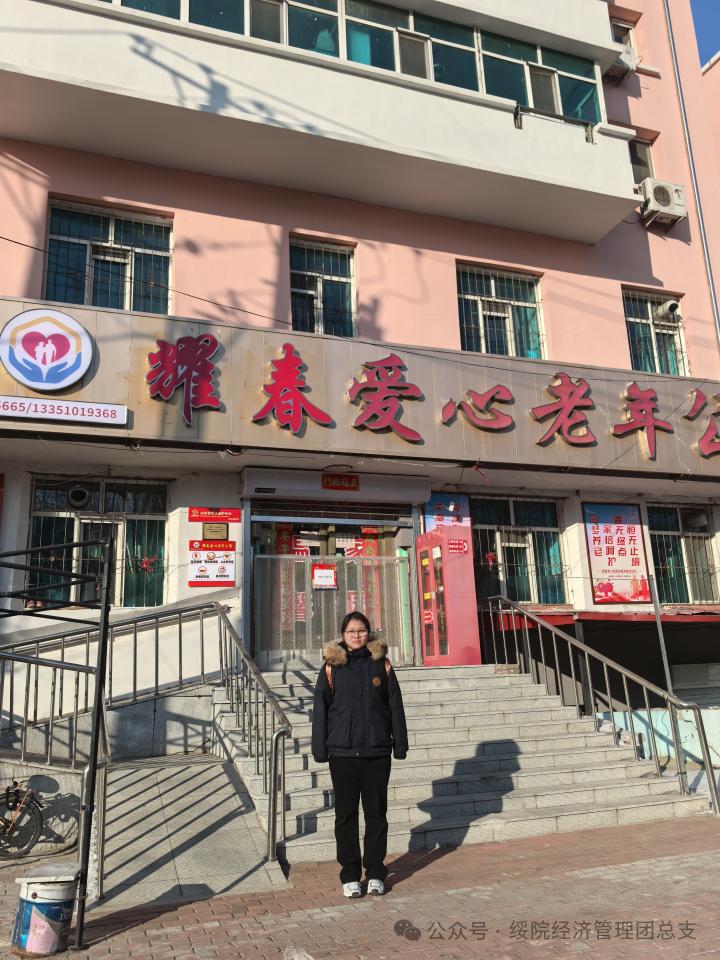 韩焱轶同学来到哈尔滨市道外区耀春爱心老年公寓,给老人们带来温暖。她协助工作人员照顾老人的生活起居,陪老人们聊天,以实际行动传递爱心与关怀。在与老人们相处的过程中,韩焱轶真切感受到了关爱老人的意义,此次活动让她深刻意识到尊老敬老是一种社会责任,会积极参与更多助老活动,将温暖传递给更多老人。