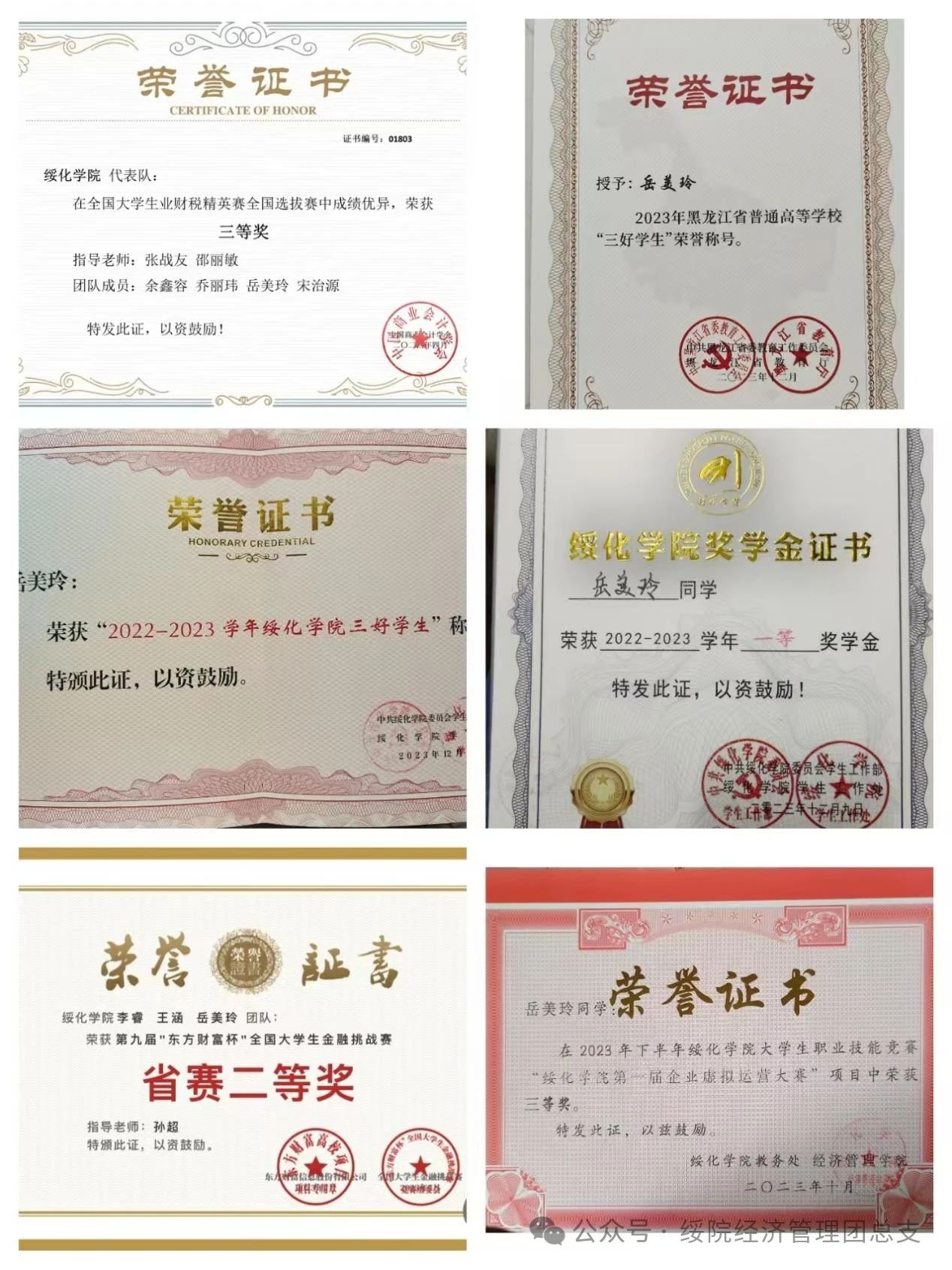 在学习上,岳美玲始终以学业为重心,保持高度自律的学习状态。课堂专注听讲,课后及时复盘。学业成绩始终位列前茅,凭借优异的表现,多次获得奖学金。此外,她还注重学术探索与交流,积极与专业教师沟通,广泛阅读相关专业材料,不断拓宽学术视野,踊跃参加各类比赛,取得了许多优异的成绩。