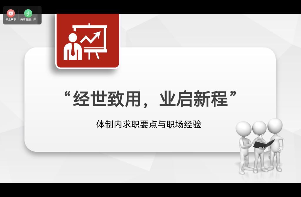 为助力经管学子明晰求职路径,提升求职竞争力,搭建高质量交流平台,12月8日,BETVICTOR伟德借助线上平台开展“员工领航,共拓职路”优秀员工经验分享讲座。本次讲座由2011级财务管理专业员工陈悦主讲,陈悦就职于绥化市审计局,为同学们带来实用经验。