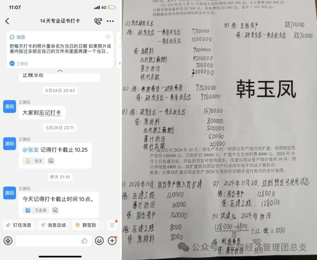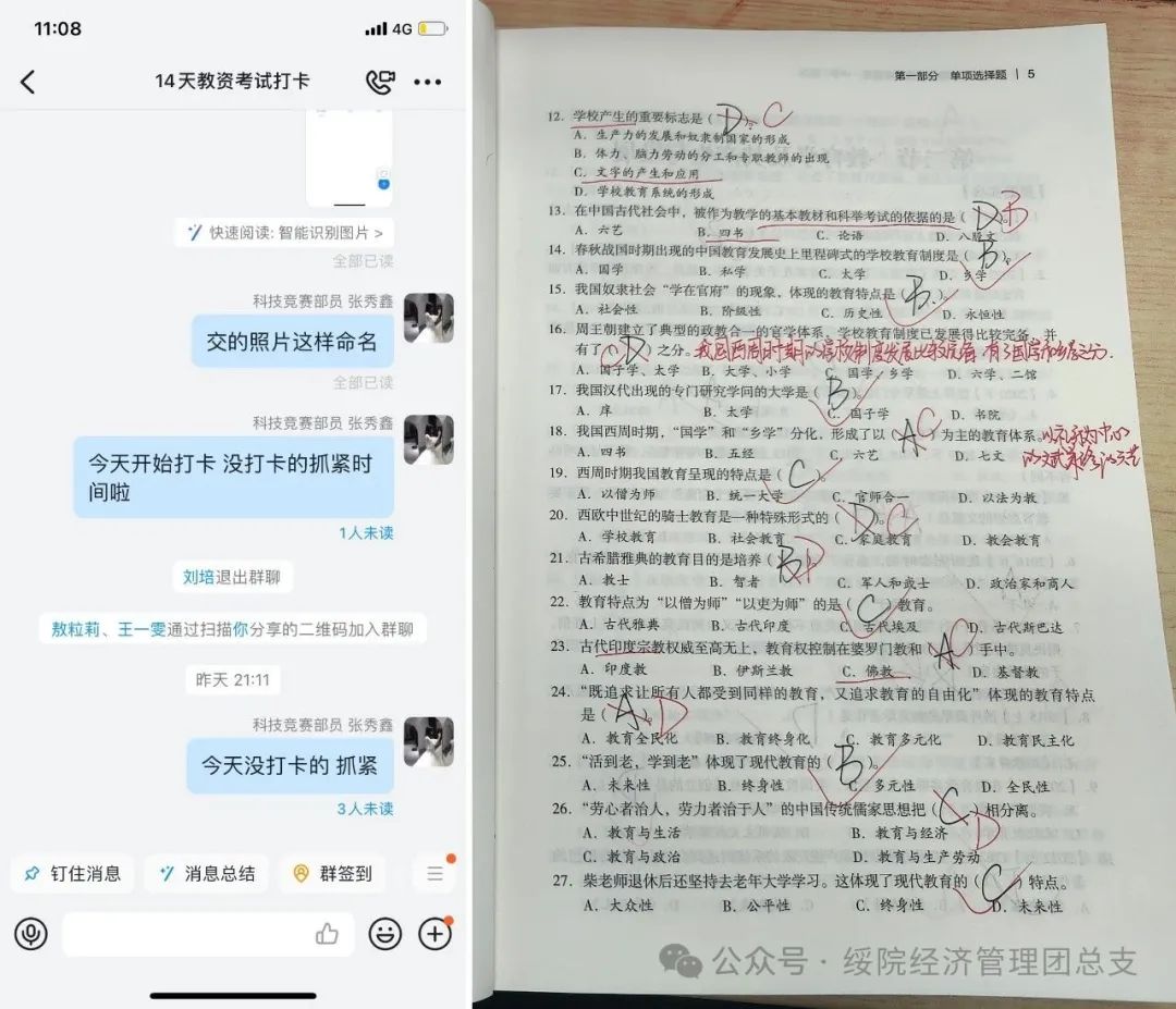 此次活动包括教资考试、四六级考试和专业证书学习打卡这三个板块,助力员工在14天的持续打卡中实现知识积累、应试能力与自律习惯的综合提升。活动期间,员工们踊跃参与,根据自身备考情况自主选择打卡板块,每日在专属打卡群内分享学习成果、心得感悟与每日计划。各群内员工负责人履职尽责,每日督促同学们及时完成打卡,并细心整理大家的学习记录与打卡内容。期待在活动的稳步推进下,同学们能够厚积薄发,凭借积累的应试技巧与坚定的自律信念,从容奔赴考场,取得优异成绩。