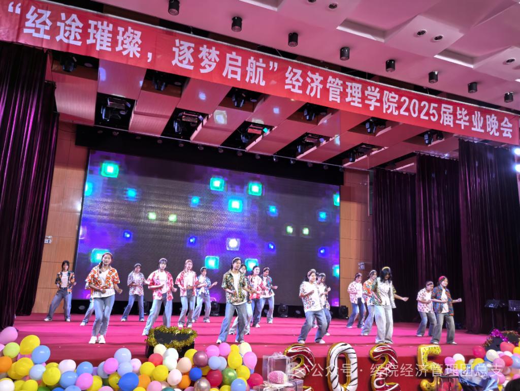 李宏敏和姜蕊以《举起手来》点燃毕业夜的序章。她们如跃动的火蝶,用舞姿将离别的惆怅熔铸成炽热狂欢,全场化作翻涌的青春浪潮,激荡着最后的肆意欢腾。