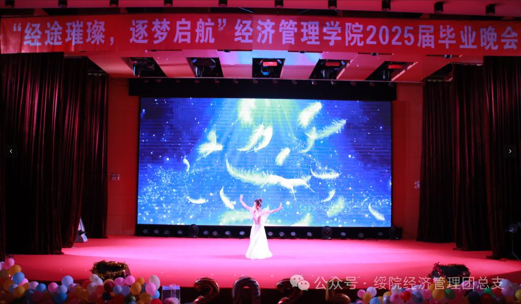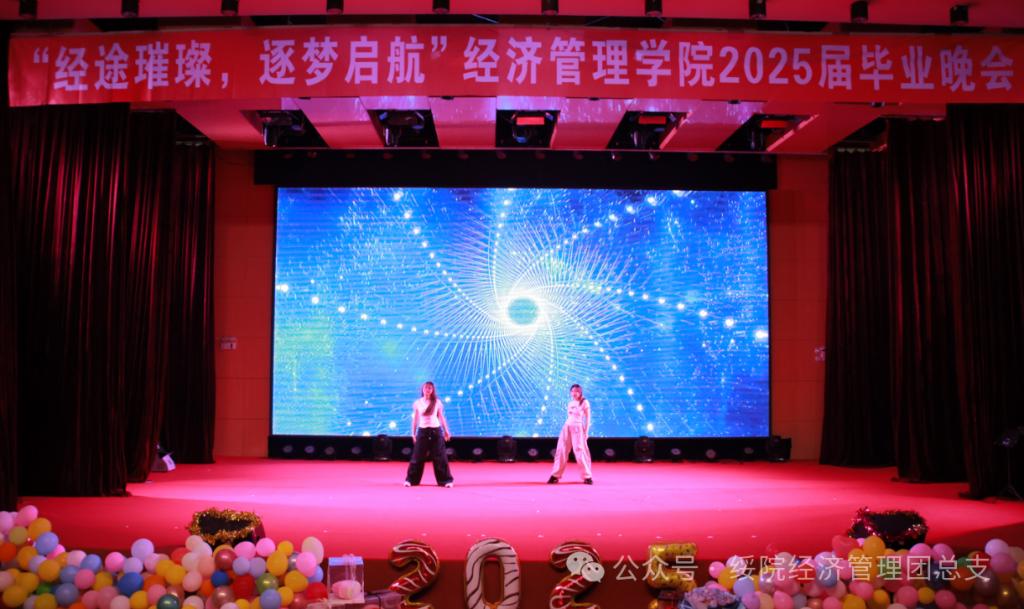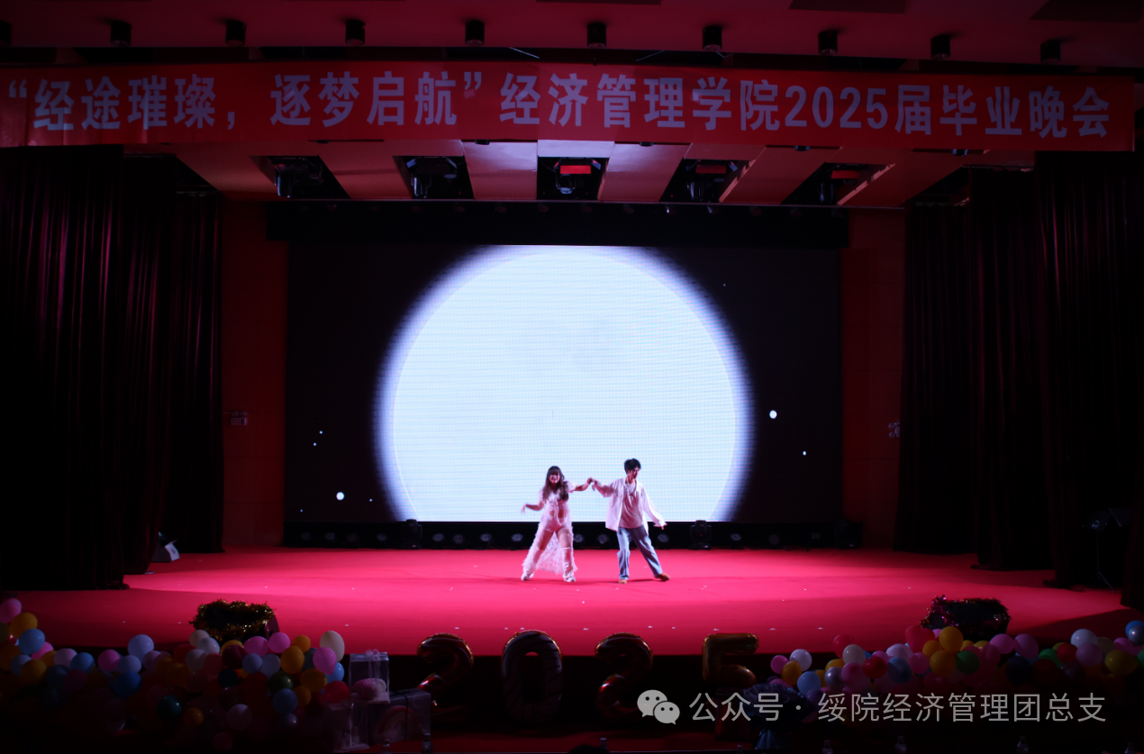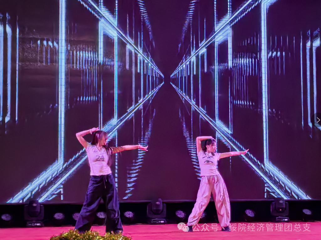 景睿与高辉鹏配合默契,翩然起舞《你和我》,律动如跃动的星火,将青春的炽热与激情编织进每一寸光影流转。节奏似奔涌的浪潮,在舞台上翻涌蔓延,勾勒出毕业季的绚烂与飞扬,绽放属于青春的诗意华章。