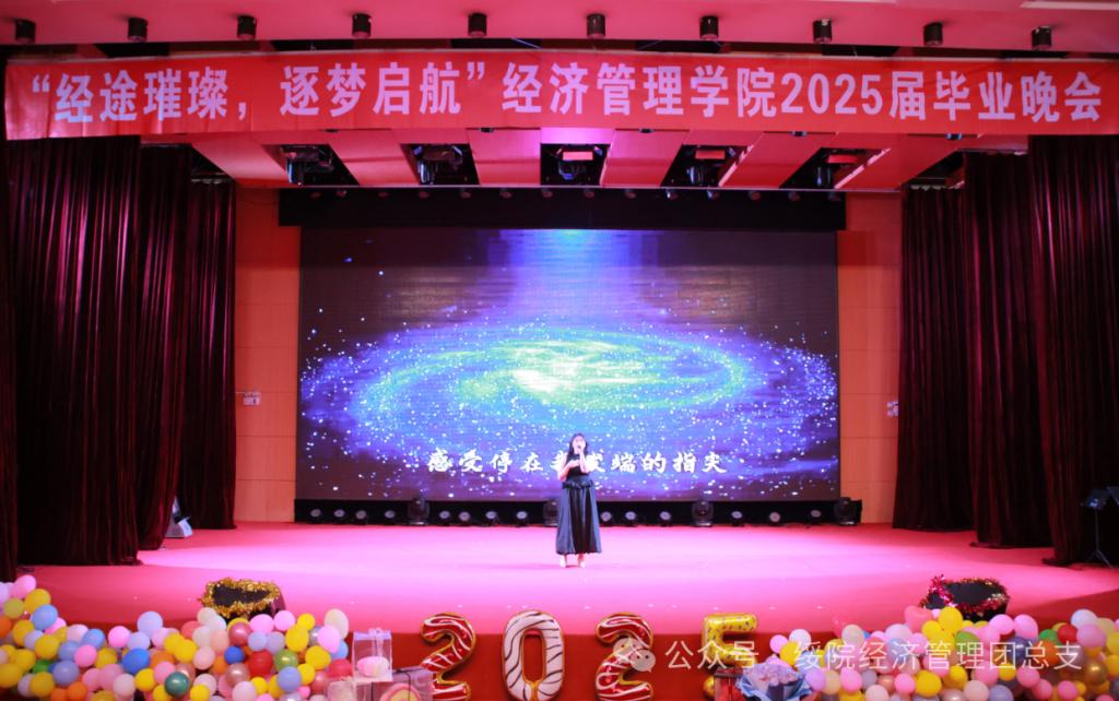 随着逐梦乐队激昂的旋律与动感的节奏在会场上空激荡,热烈的氛围迅速席卷全场。在观众们此起彼伏的欢呼声中,主持人面带微笑登上舞台,向即将踏上人生新征程的2025届毕业生致以最诚挚的祝福,宣告毕业晚会正式拉开帷幕。