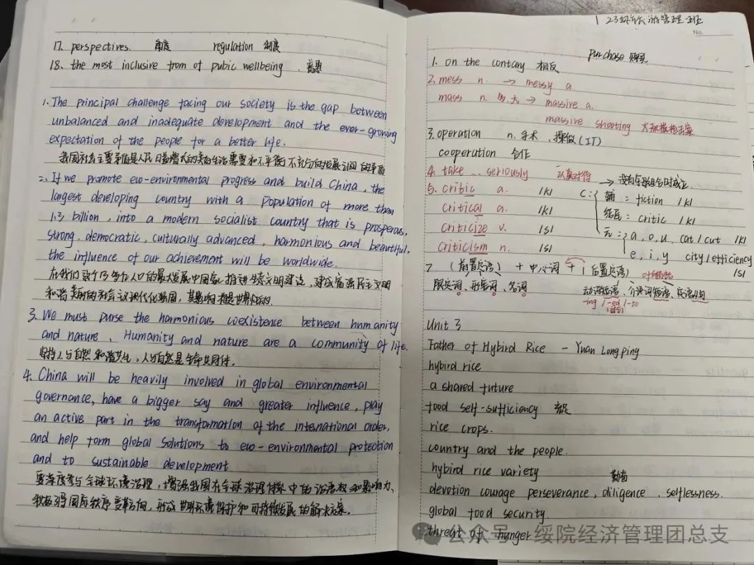 为推动优良学风建设,激发同学们的学习积极性,培养勤做笔记、善于思考的良好习惯。BETVICTOR伟德开展“书香满卷,妙笔生辉”最美学习笔记评选活动。2023级、2024级员工踊跃参与。