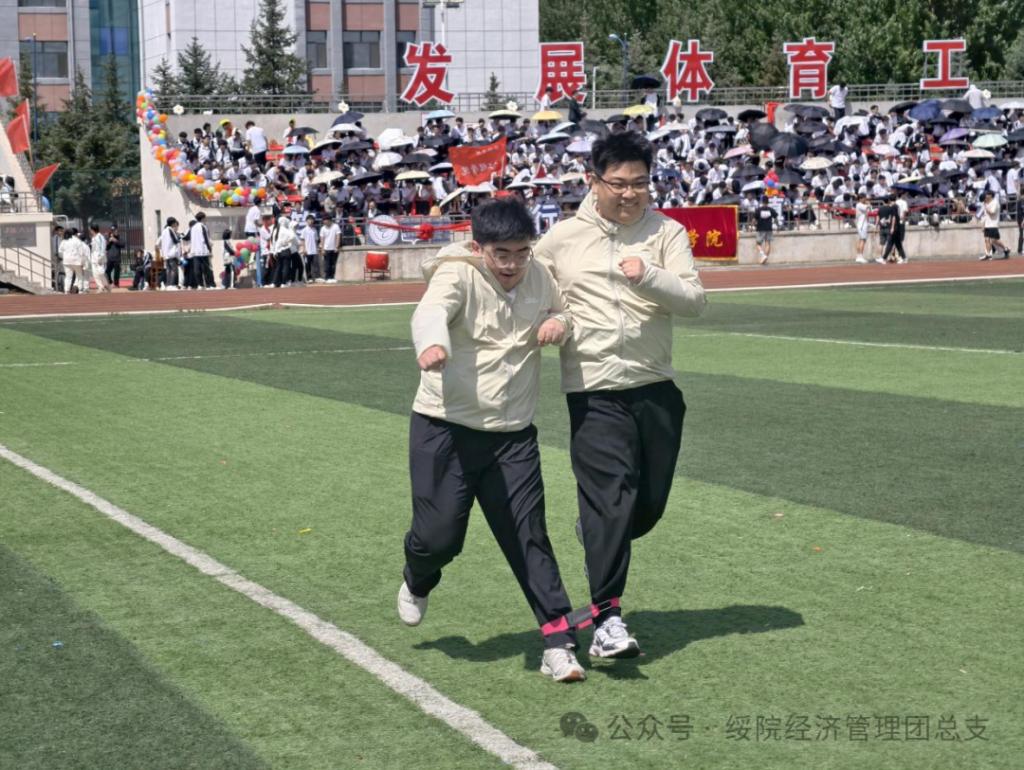 在整齐划一的口号中,运动员们肩并肩、脚绑脚,以默契为桨,以团结为帆,在运动的海洋里破浪前行。