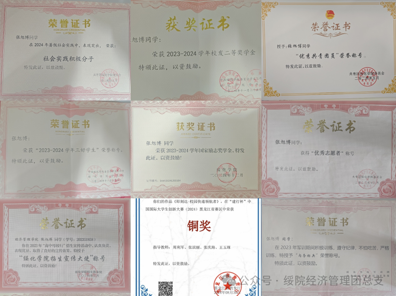 在生活上,张旭博秉持“奉献友爱”的精神,耐心帮助同学解决生活难题,热情组织班级活动增进同学情谊。他用细致入微的关怀和积极向上的态度,营造和谐温暖的集体氛围,用实际行动践行青春使命,彰显新时代青年互帮互助、团结奋进的精神品格。