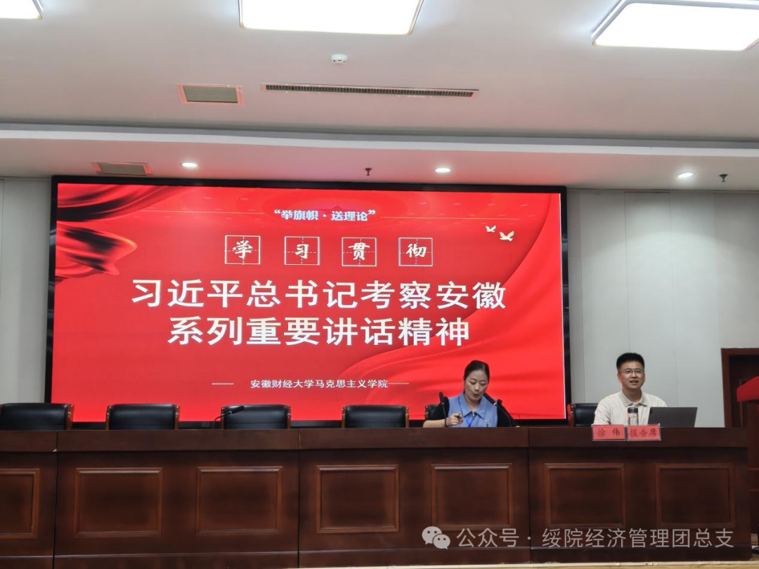 安徽财经大学徐伟教授以安徽合肥城市发展为切入点,讲解习近平总书记考察安徽重要讲话精神,社会实践团成员深刻的认识到了习近平总书记对广大青年的殷切希望,并以习近平总书记关于青年工作思想及考察安徽讲话精神为指引,在新时代征程中砥砺奋进,当以青春之力筑梦前行。