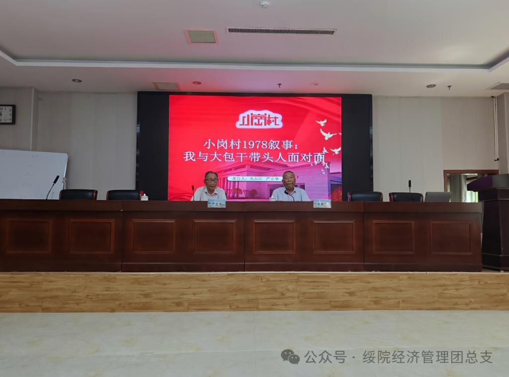 社会实践团成员认真学习《小岗村1978叙事》专题报告。会上,小岗村“大包干”带头人关友江、严立华讲述了那段波澜壮阔的历史。随后,在严金昌讲述下社会实践团成员了解到沈浩书记的先进事迹。社会实践团从老一辈的口中看到了“敢闯敢试”的改革壮举,体会到了扎根基层的为民初心。社会实践团成员当承先辈之志,勇担使命,在实践中汲取奋进力量。