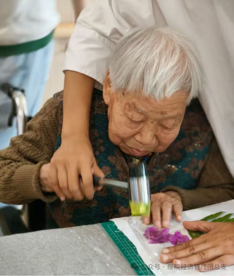 杨鑫垚同学走进老年公寓,为老人们细致讲解标本制作过程并手把手教老人们制作标本。这段难忘的经历让她有机会与老人们面对面交流,为他们的生活带去欢乐与陪伴,更使她深刻领悟到关爱老人、服务社会的重要性。未来她也会继续积极参与志愿服务活动,用陪伴编织关爱网络,让敬老爱老的传统在日常点滴中扎根生长,让老人们在关爱中感受温暖。