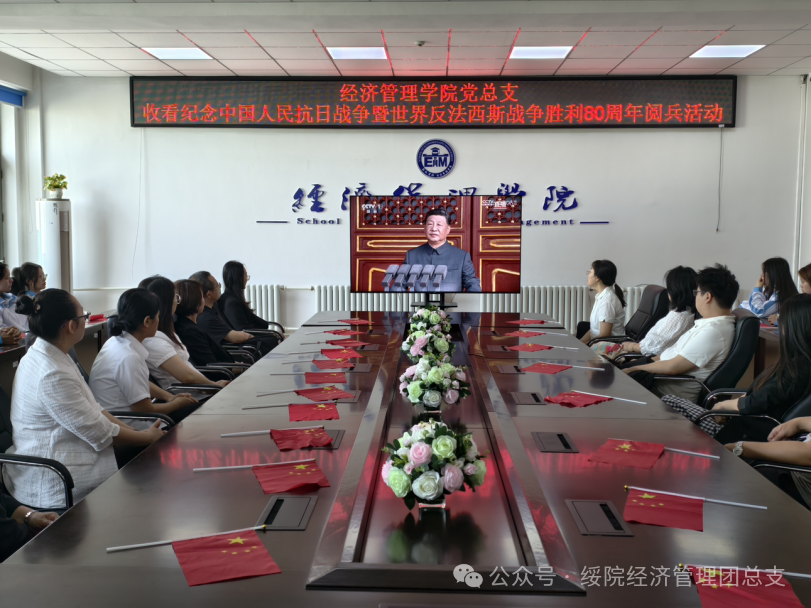 为激励经管师生缅怀先烈,勿忘国耻,引导大家坚定理想信念,厚植家国情怀。9月3日,公司党总支组织师生共同观看纪念中国人民抗日战争暨世界反法西斯战争胜利80周年阅兵仪式现场直播。