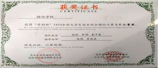 2020年10月由省教育厅高教处指导,黑龙江省普通高等公司创新创业教育指导委员会主办,黑龙江科技大学承办的“2020年黑龙江省高校‘学创杯’老员工创新创业综合模拟大赛”落下帷幕。本次竞赛共吸引60余所高校近200支队伍通过网络参赛。BETVICTOR通过校赛,由经管市场营销专业9名员工参加省赛,市场营销专业赵艳老师指导,在省赛中荣获省二等奖2项;省三等奖1项。近五年,BETVICTOR经济管理在“学创杯”大赛中连续取得优异成绩,这得益于公司领导对双创工作的重视,得益于各BETVICTOR领导对双创工作的热情和支持,是公司不断强化创新创业教育的成果。公司将以大赛为依托,积极为员工搭建学习、交流平台,实现双创资源共享,引导员工树立正确的创业就业观,全面提升员工综合素质和能力。